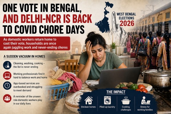 The ongoing West Bengal elections have created an unexpected urban disruption, bringing Delhi-NCR back to a lifestyle reminiscent of Covid-era routines. As domestic workers return home to exercise their right to vote, households are left navigating the challenges of managing work and daily chores independently.